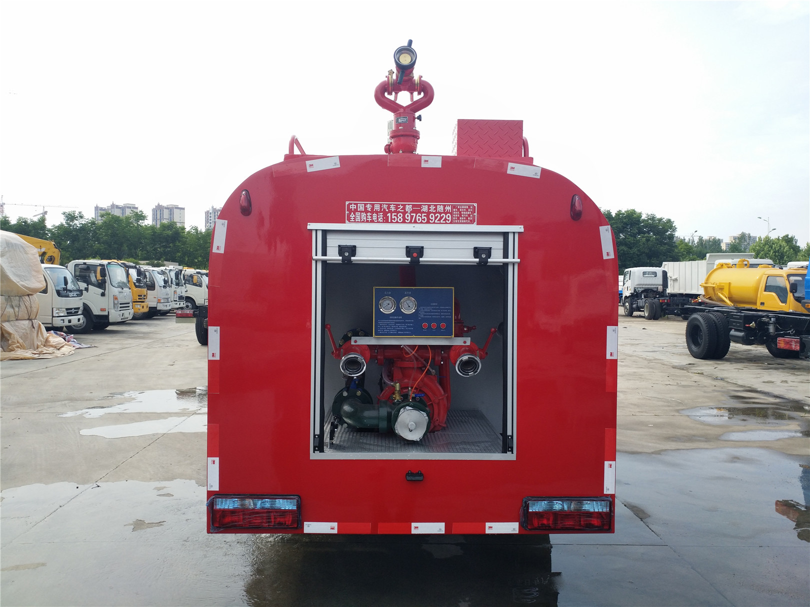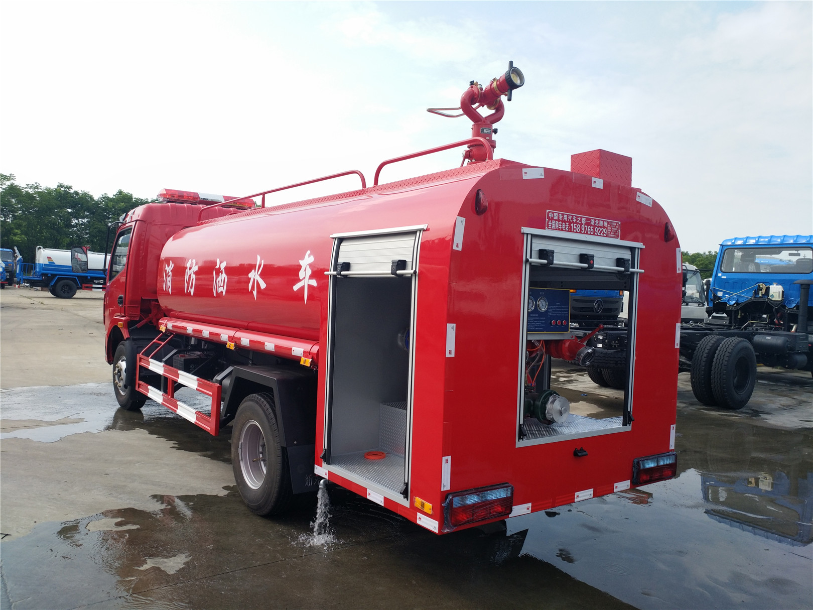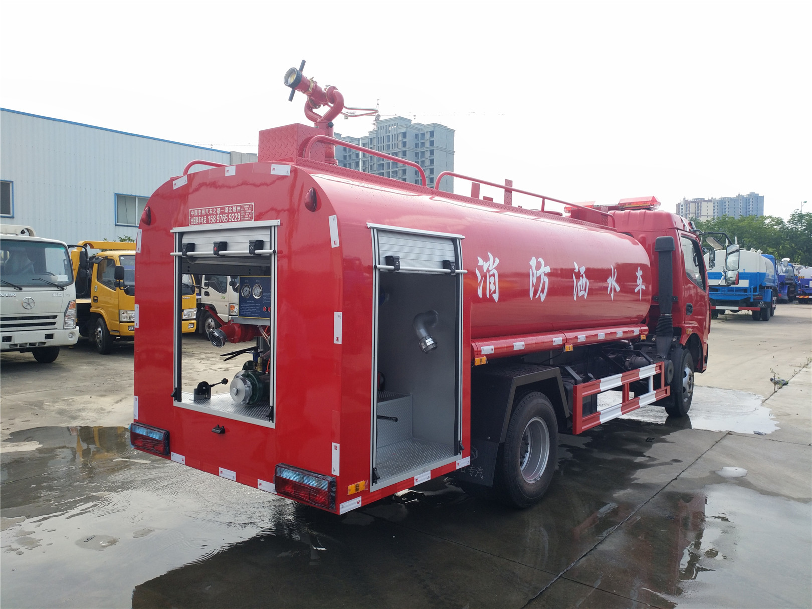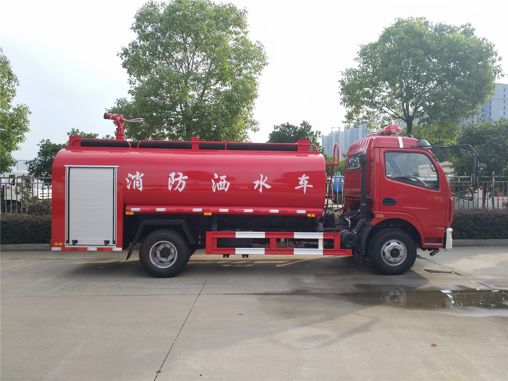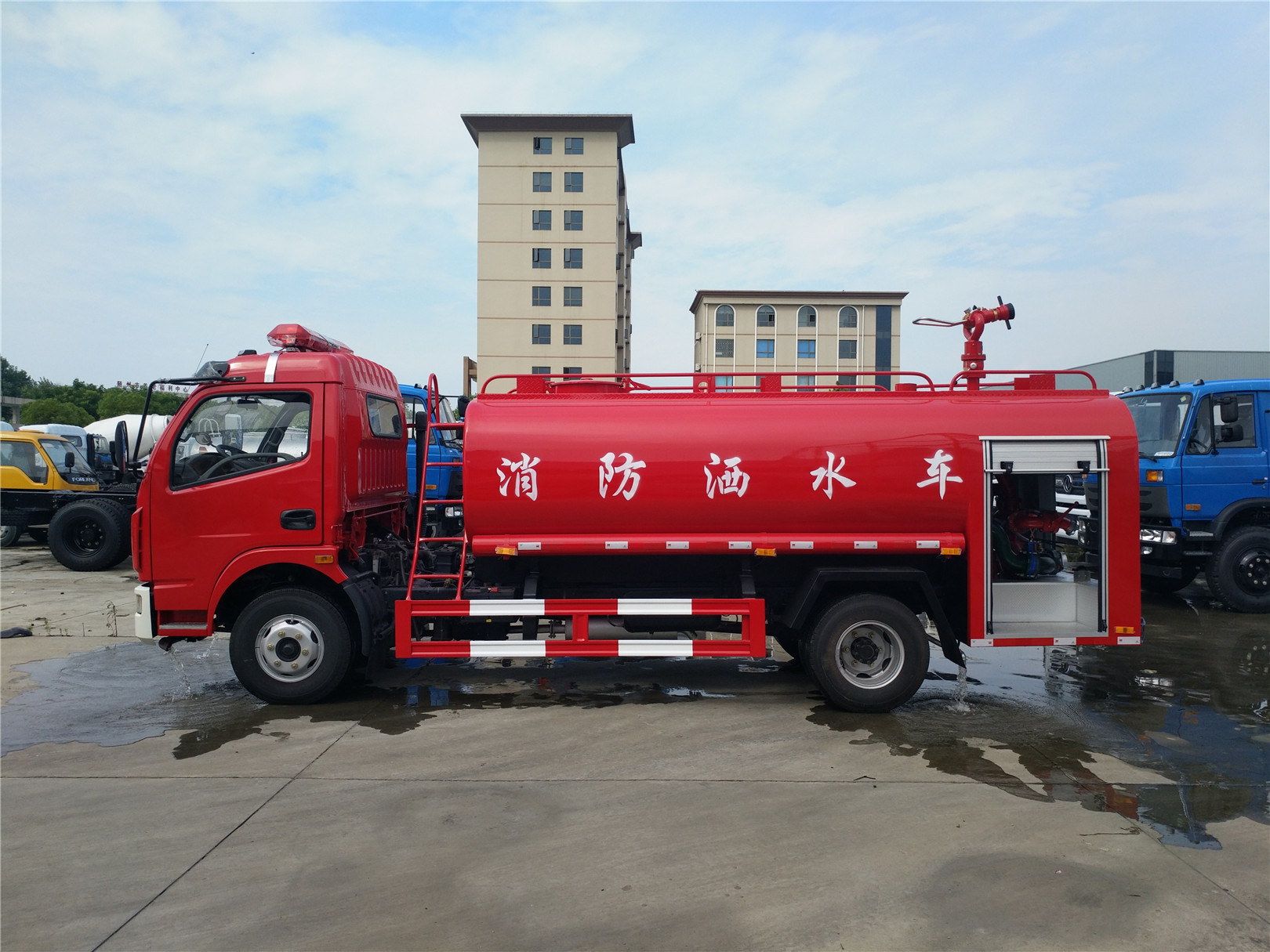 消防車又名:滅火車、救火車、水罐消防車。采用二類載貨汽車底盤改裝而成,專用部分由液罐、泵室、器材箱、動力輸出及傳動系統、管路系統、電氣系統等 組成,廣泛適用于城鎮公安消防隊、石油化工、廠礦企業、森林、港口、碼頭等部門,可迅速接近火場展開滅火戰斗,撲救各種火災 ,是理想的消防裝備。