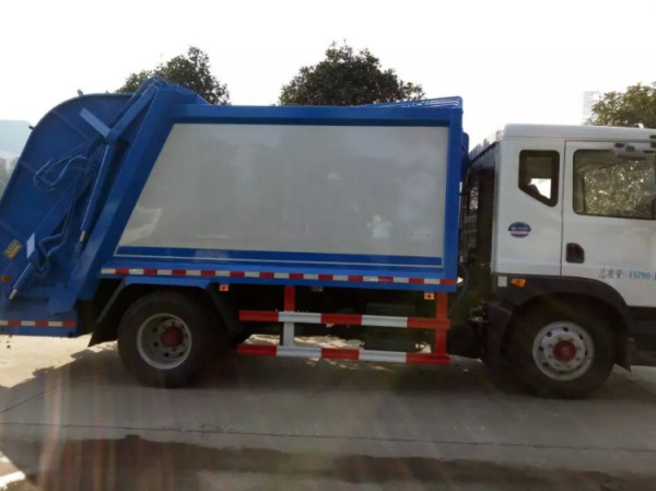 ⑨ 方便的操作控制 作業(yè)控制盒分別安裝在駕駛室內(nèi)和車尾,駕駛室內(nèi)的作業(yè)控制盒可控制推擠卸料和選擇操作模式(如自動或手動),車尾的作業(yè)控制盒則控制壓填機(jī)構(gòu)和翻桶機(jī)構(gòu)的作業(yè),使用操作十分方便。特別是在垃圾填埋場,作業(yè)人員無須下車即可完成卸料和污水排放。